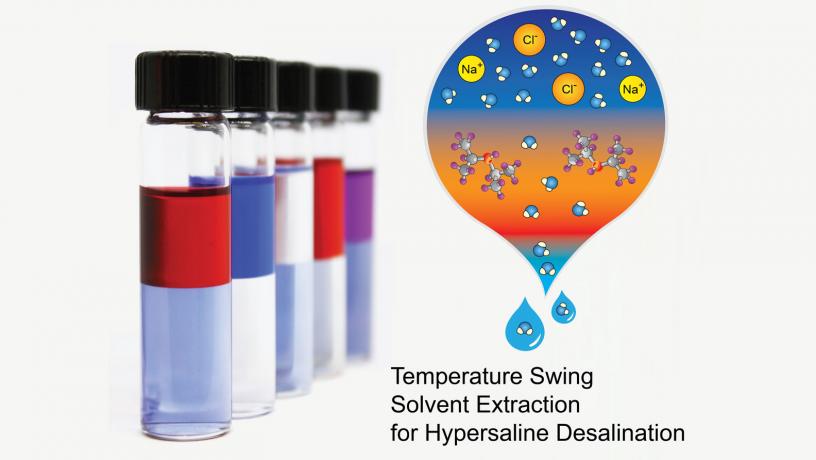 TSSE utilizes a low-polarity solvent with temperature-dependent water solubility for the selective extraction of water over salt from saline feeds. Because it is membrane-less and not based on evaporation of water, it can sidestep the technical constraints that limit the more traditional methods. Importantly, TSSE is powered by low-grade heat (< 70 C) that is inexpensive and sometimes even free. In the study, TSSE removed up to 98.4% of the salt, which is comparable to reverse osmosis, the gold standard for seawater desalination. The findings also demonstrated high water recovery (>50%) for the hypersaline brines, also comparable to current seawater desalination operations. But, unlike TSSE, reverse osmosis cannot handle hypersaline brines.