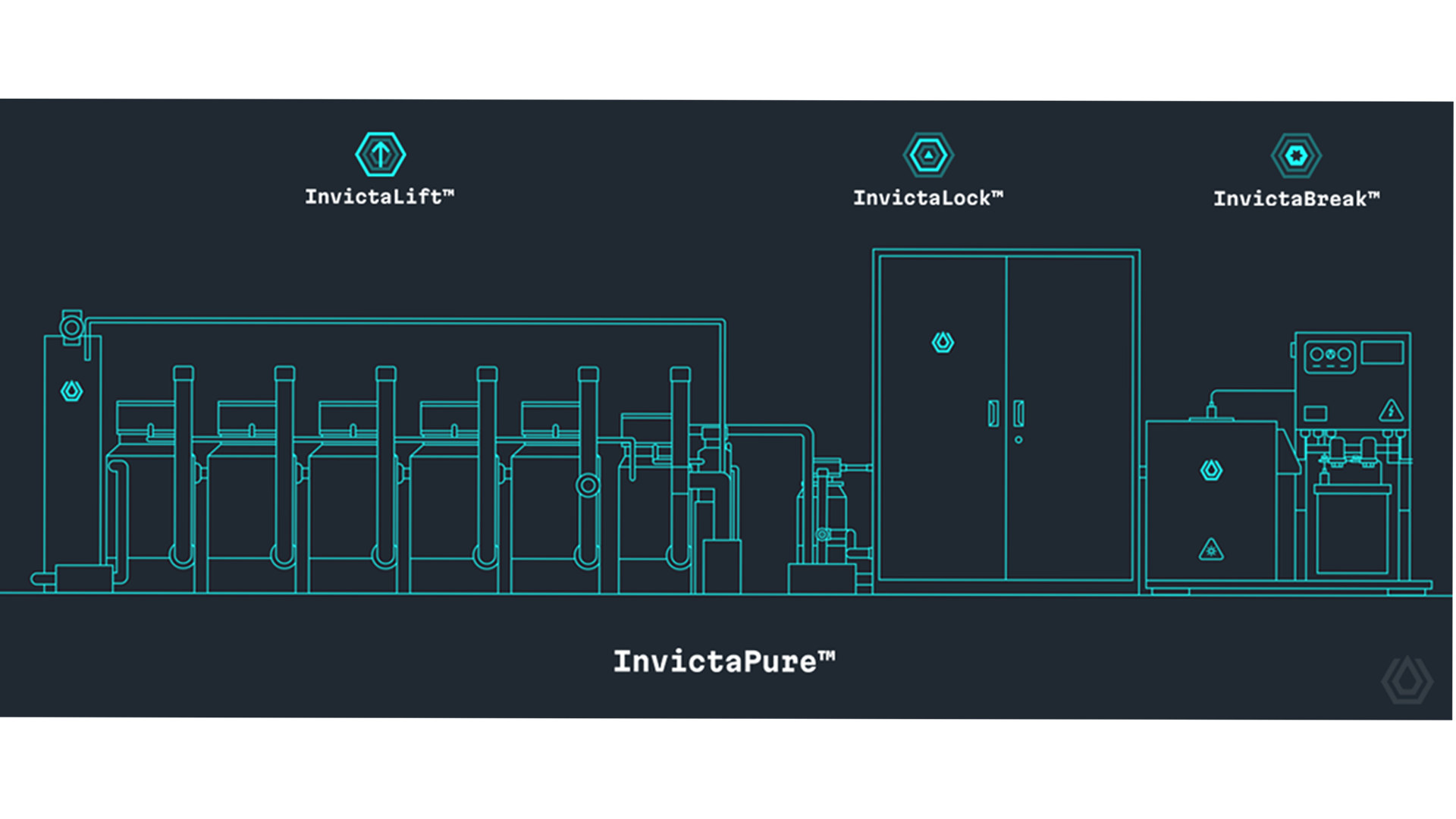 Where commonly applied PFAS removal technologies require filters, carbon, resins, or high-pressure membranes, Invicta Water’s system works by first pulling PFAS out of water (‘Lift’), then concentrating it into a highly enriched phase (‘Lock’), and finally using a patented photocatalytic process to break PFAS down into harmless components (‘Break’).