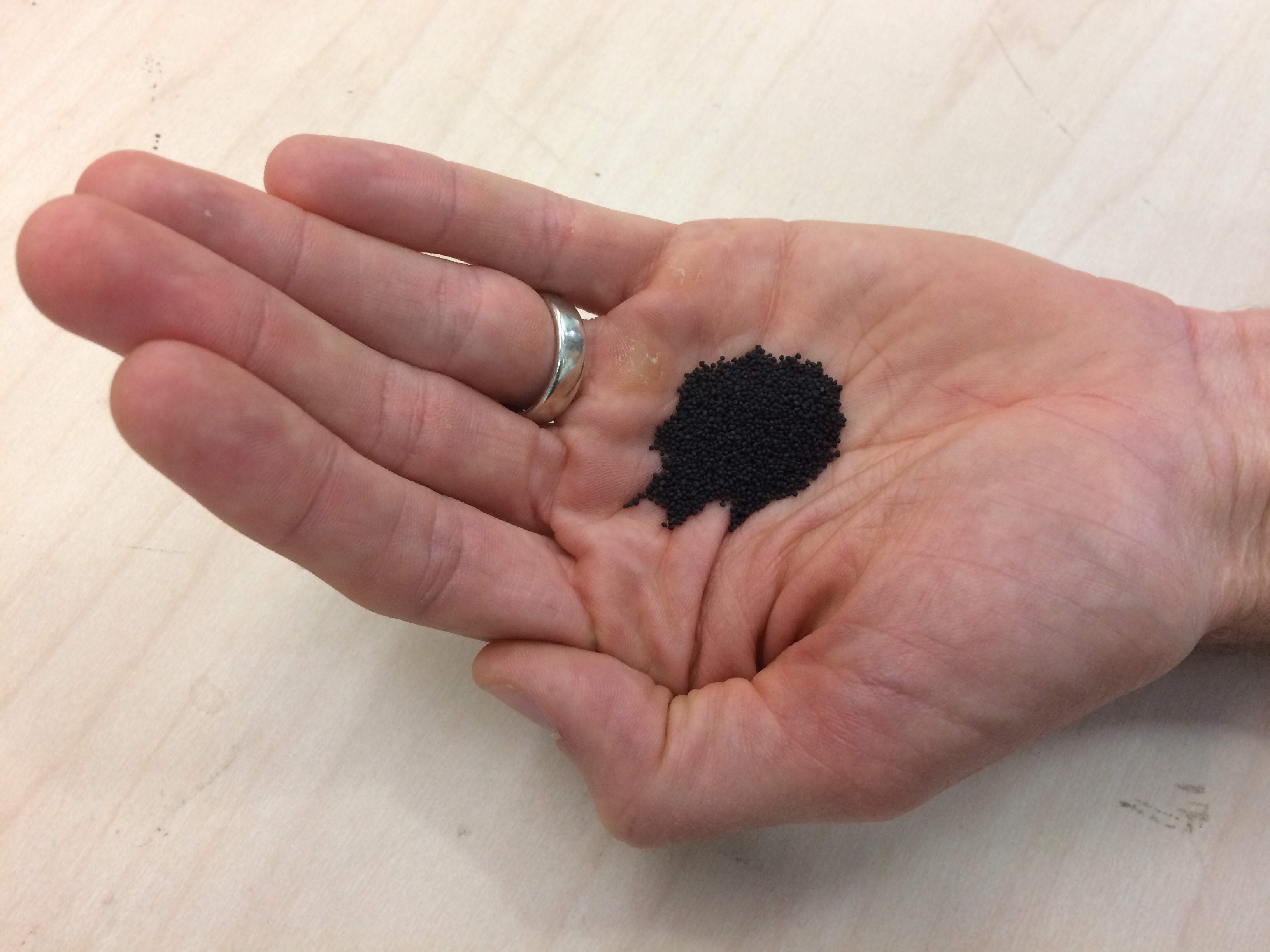 The manganese oxide-coated sand, which is a dull brown color, is safe and environmentally friendly. “I guarantee that you have some manganese oxide on your shoe right now because it is ubiquitous in the soil,” Charbonnet said.