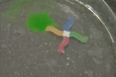 To build their minimotors, the researchers created concentrated droplets of polyvinylidene fluoride (PVDF) and dimethyl formamide (DMF) that, due to the Marangoni effect, rotate rapidly on water. Testing showed that the droplets could propel paper goldfish hundreds of centimeters without emitting any pollutants into the air.