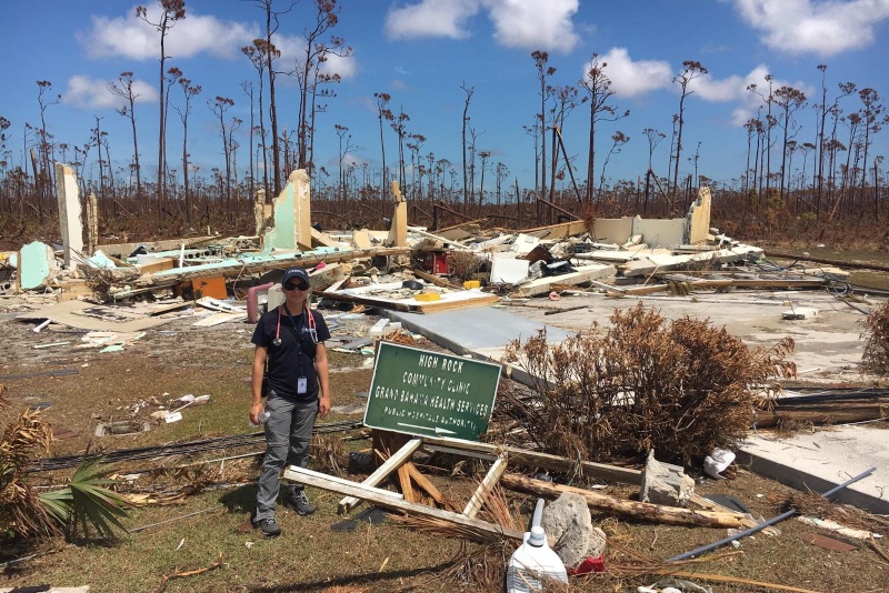 UConn's Dr. Natalie Moore in the Bahamas at the site where a hospital stood before Hurricane Dorian. Moore and Amannda Ramsdell from the UConn Health Emergency Department are working with the International Medical Corps, which is establishing a tent hospital to care for patients on Grand Bahama Island. (Image Source: UConn Today)