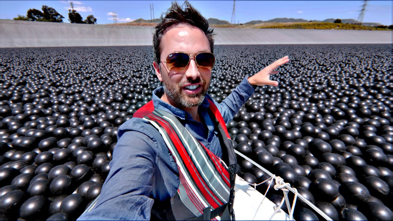 Veritasium reporter took a boat through 96 million black plastic balls on the Los Angeles reservoir to find out why they're there. Most people think they reduce evaporation, but it turns out this isn't the reason they were introduced.