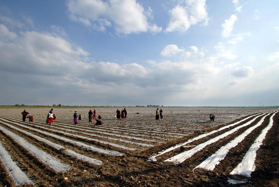 Women pick cotton in 2005 in the town of Andijan, Uzbekistan, for farmers who are forced to sign annual agreements with the government to grow one of the country's leading exports. (AP Photo/Mikhail Metzel)