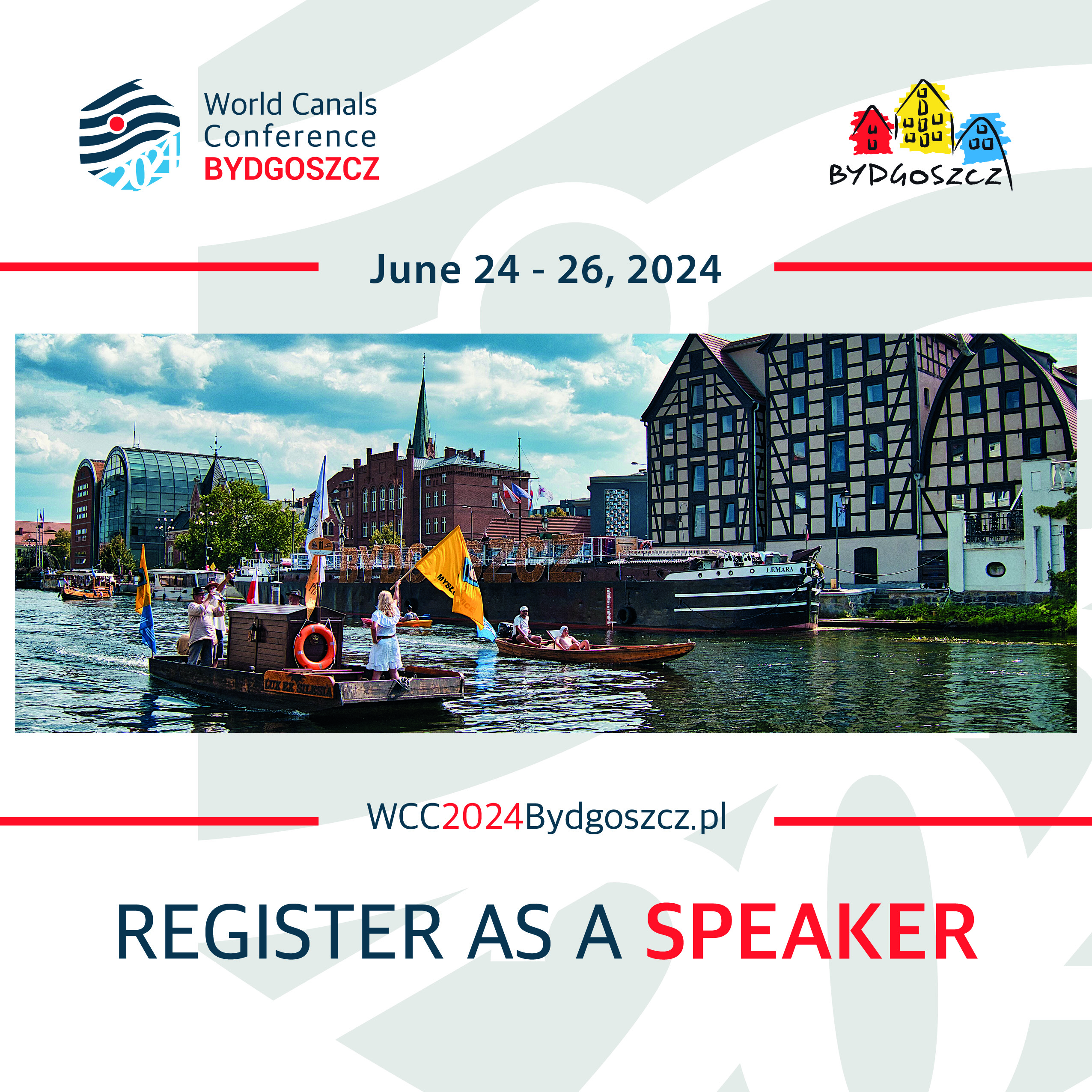 On June 24-26, 2024, the City of Bydgoszcz will host the World Canals Conference - WCC organized under the patronage and in cooperation with the Inland Waterways International. It is an annual event for inland waterways enthusiasts, held alternately in Europe, Asia and America (2019 – China, 2021 – USA, 2022 – Germany, 2025 - USA). It will give us another opportunity to continue discussion on development of inland waterways in Poland and to place in an international context.