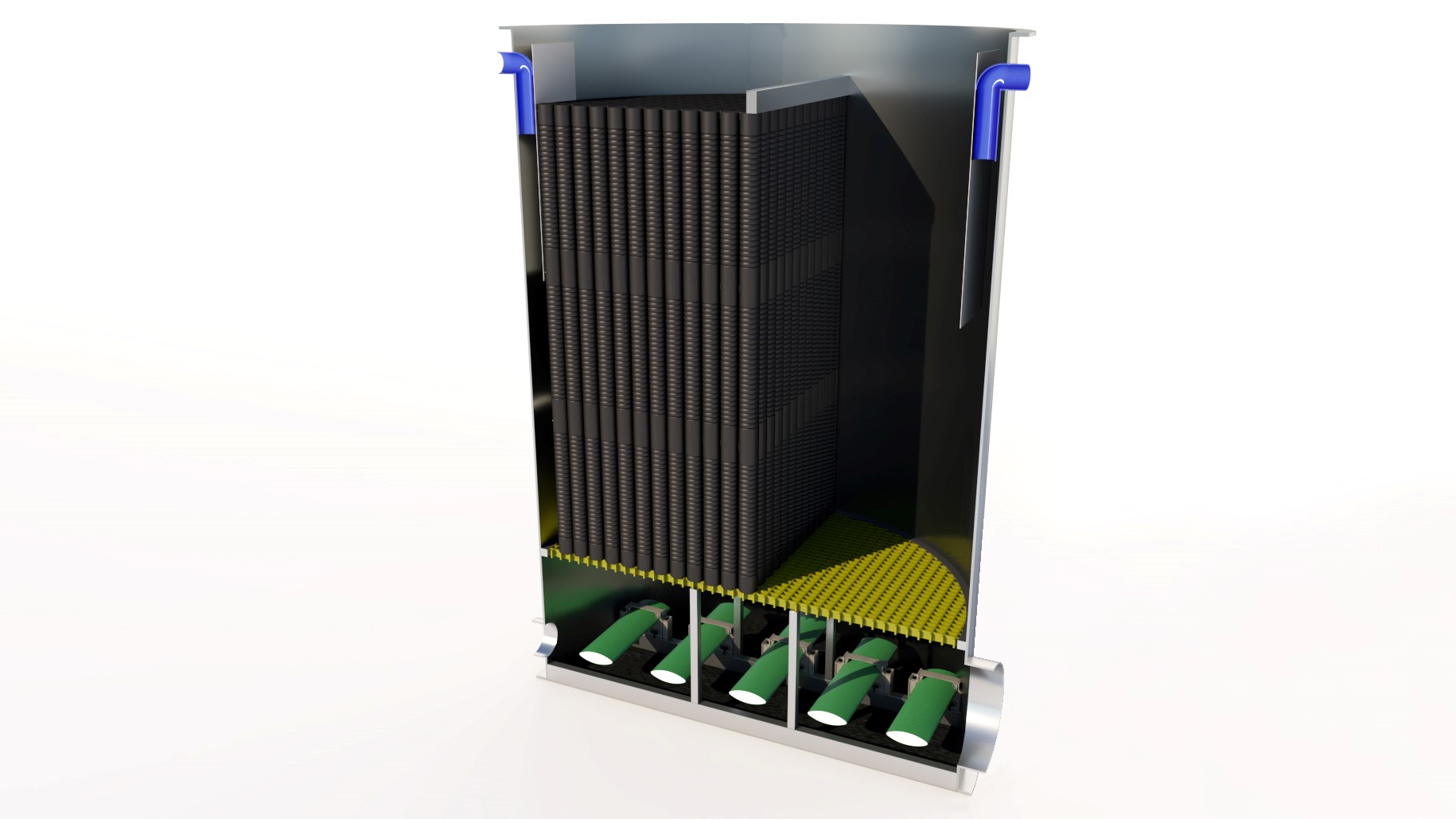In conventional clarifiers particles with a higher gravity than waste water will settle down to the tank bottom over time. The closer the gravity of the particles is to the one of waste water as longer takes the settlement process and as larger the clarifiers have to be build. Lamella clarifiers are a very cost effective alternative to conventional clarifiers as they reduce the needed tank volume by 2 to 4 times. Lamella clarifiers consist of multiple channels that function as additional surface area to reduce the settling path of the particles in the waste water. AET provides consulting and lamella clarifier systems consisting of lamella clarifier plate settlers, support- and anti-floating structure, sludge removal and effluent launders.