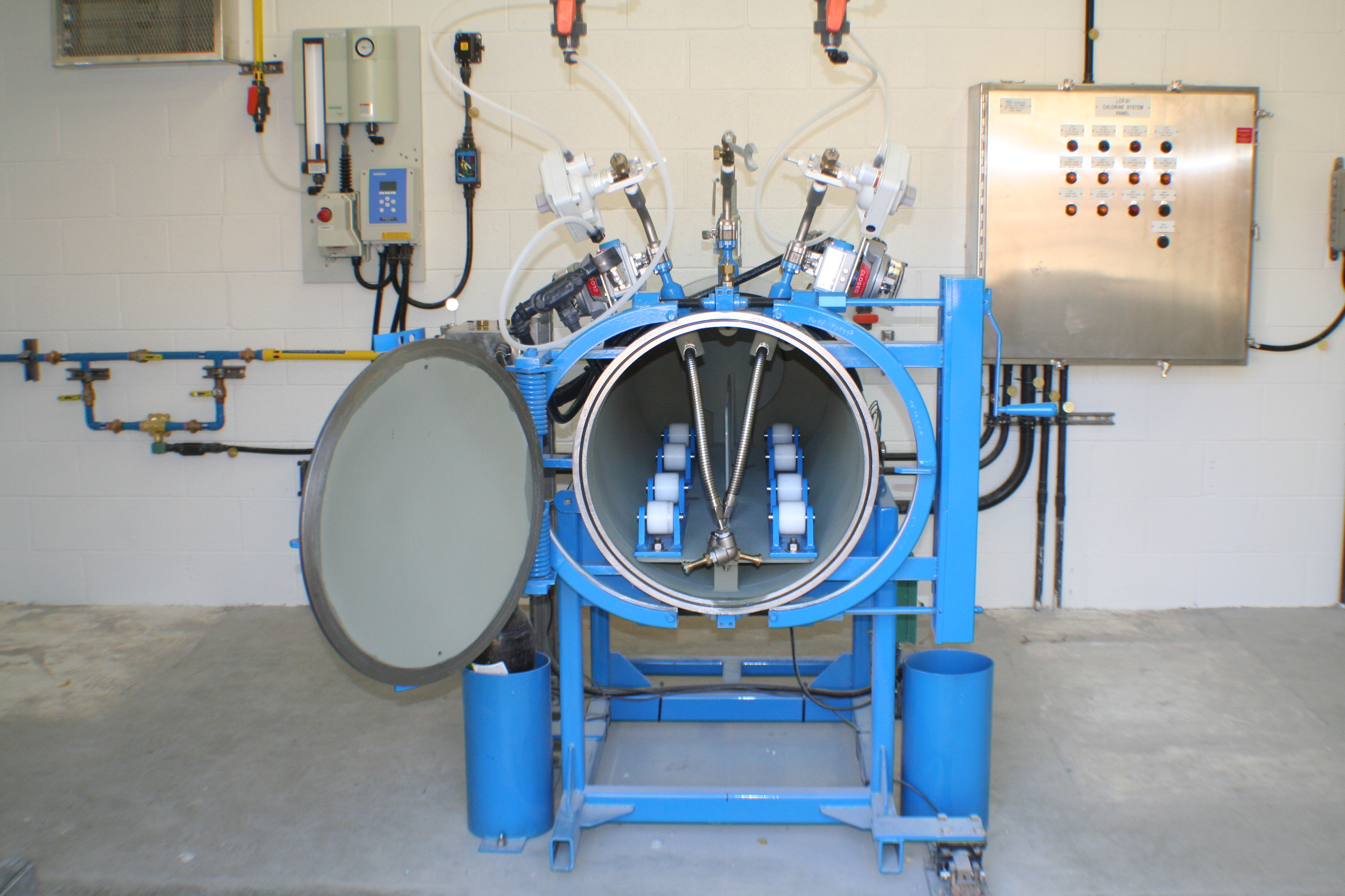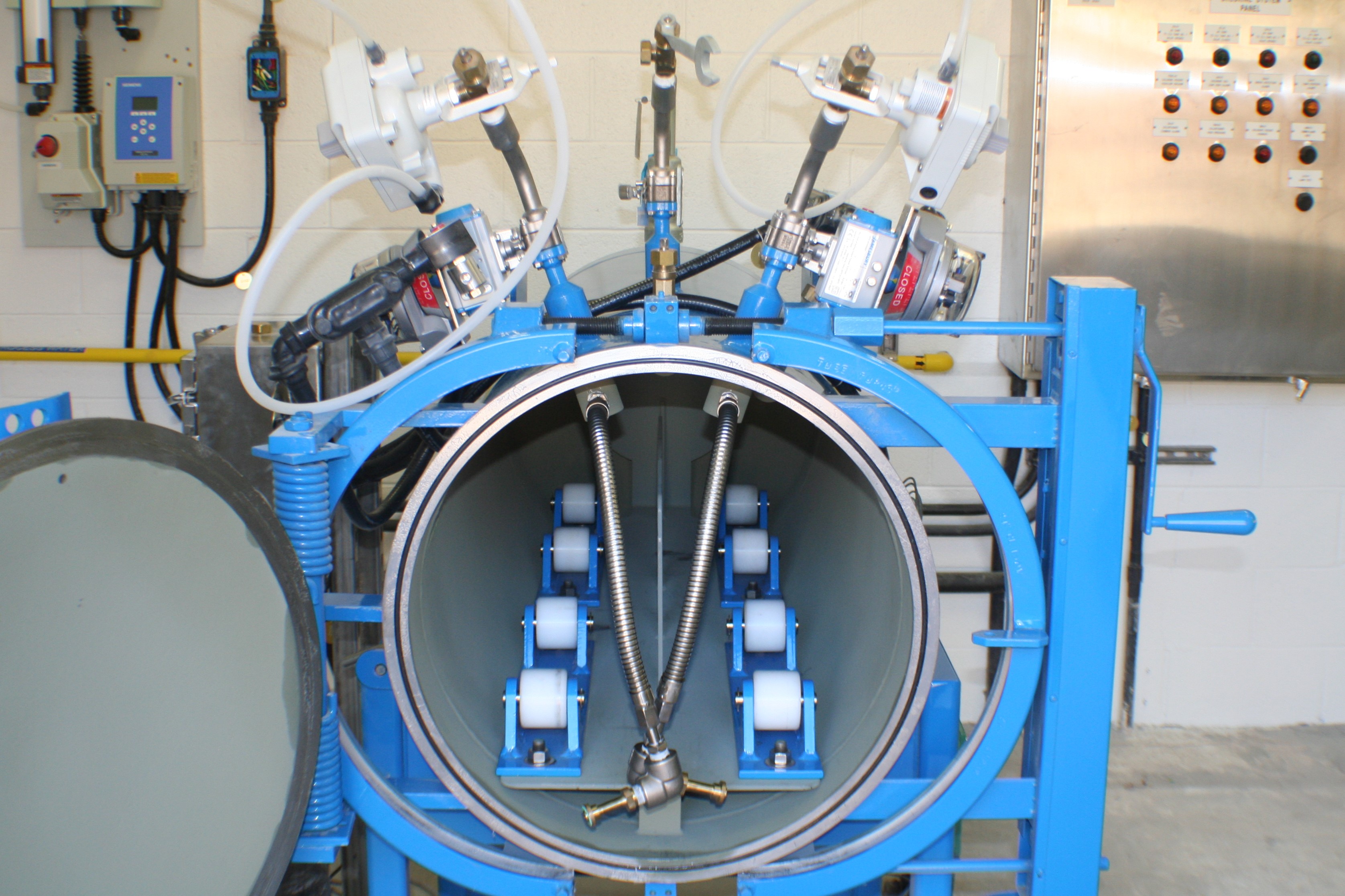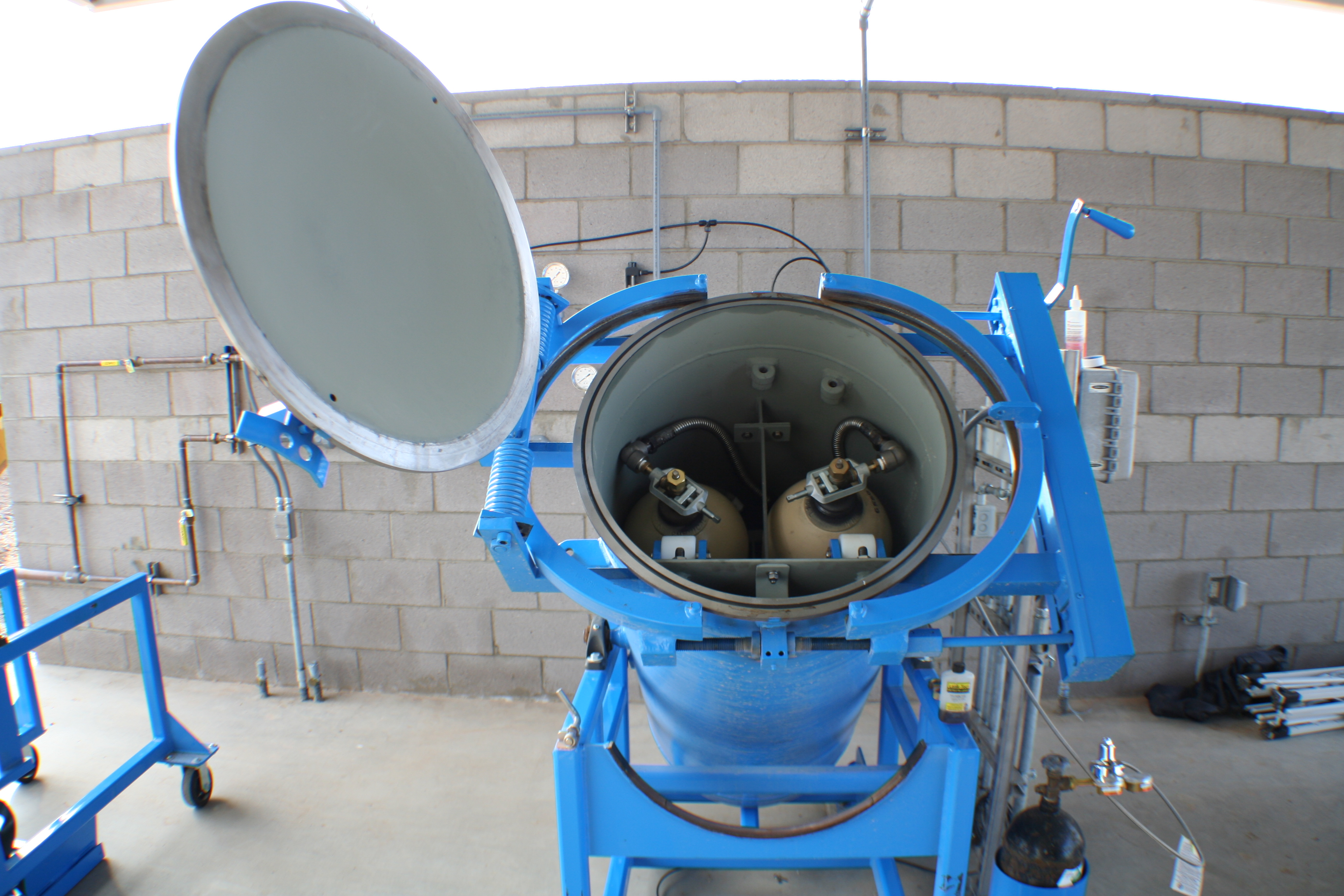 ChlorTainer is a high-pressure containment vessel into which a 150-lb chlorine gas cylinder is processed.