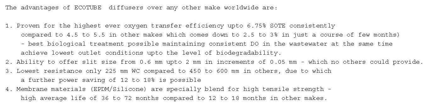 We Offer fine bubble diffusers proven for highest ever oxygen transfer efficiency
