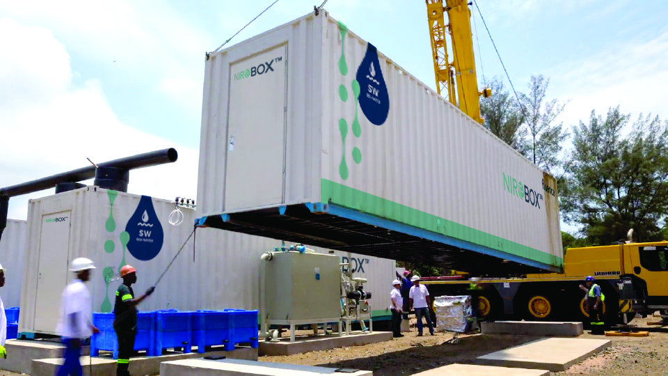 NIROBOX SW is a modular, high-output and highly-efficient seawater desalination solution that offers pre-treatment reverse osmosis and energy recovery device (ERD) – all housed in a single, self-contained 40 foot shipping container.