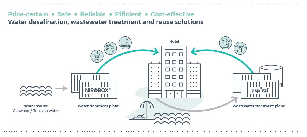 End-to-end project finance water and wastewater solution for hotels, resorts, industrial parks and property developments and municipalities.