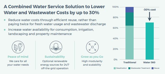 With all of your water needs covered you are free to focus on your core hospitality and property management objectives – and most importantly, on keeping costs down and efficiency high. A Closer Look at Water 360 In-house solutions designed for sustainable off-the-grid water supply, wastewater treatment and reuse