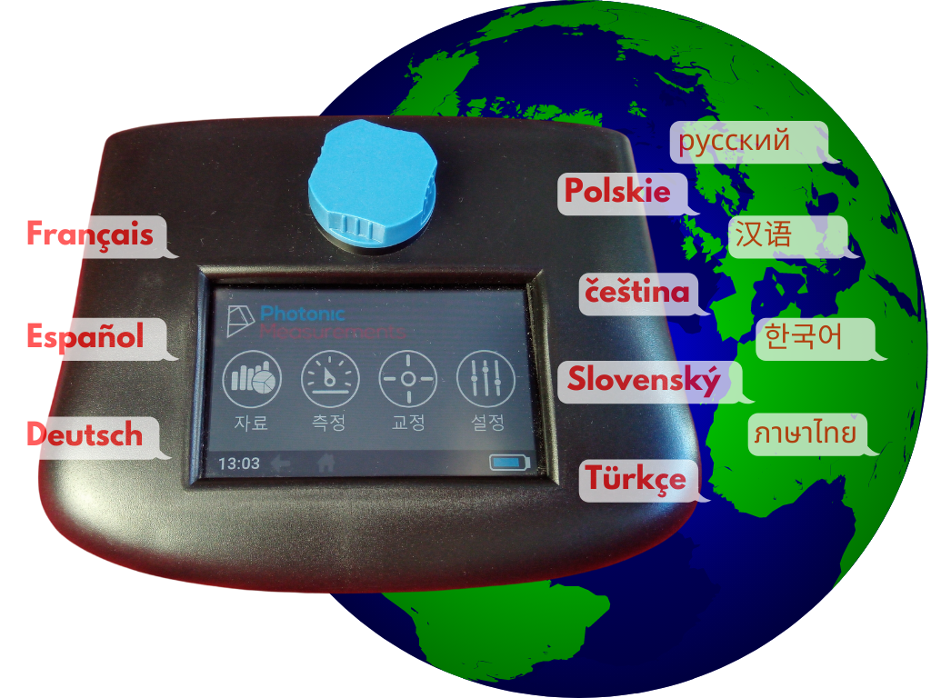 With a modern user interface, huge storage for results and PC connectivity, the Go! and Dip Probe have always been easy to use. Now a range of languages have been added to improve the user experience for our customers around the world. Whether you need support for Chinese, Russian, Spanish or any other language get in touch at info@photonicmeasurements.com and we will be happy to help.