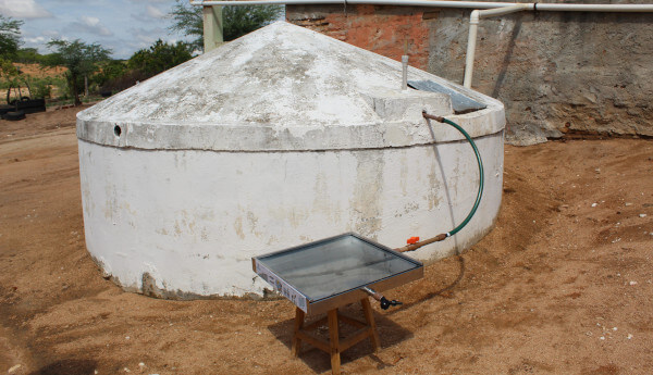 Device to rain water purifying plants without chemical contamination of cisterns in rural areas of the semiarid region. The system depends only on the sun, and has a lifespan of about 20 years without the need for external intervention. Every type of maintenance can be performed by users simply and illustrated in the equipment manual.