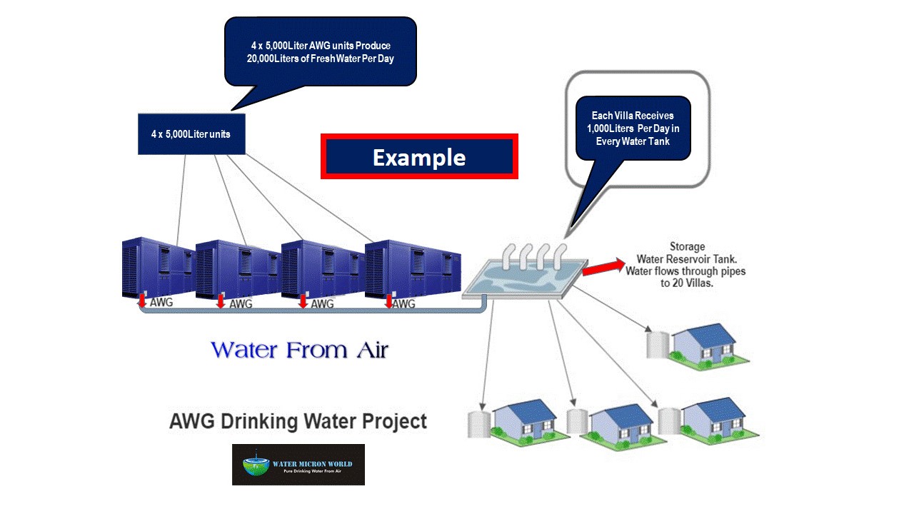 WaterMicronWorld Atmospheric Water Generators, AWG-C Series units can generate pure drinking water from 15 to 20,000 liters of pure drinking water per day. Our unique compact systems are ideal for Hotels, Schools, Office buildings, Housing developments, Hospitals, Marine and small Municipal applications.