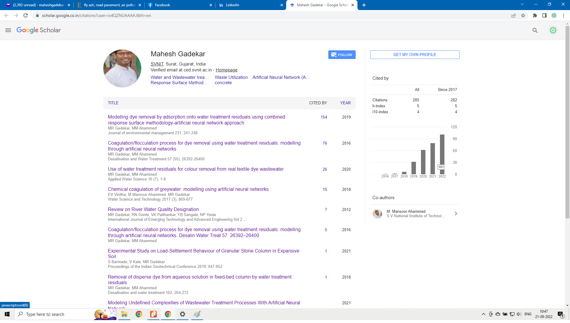 The current year (2022) citation count reached to 100+ for the articles published in the Web of Science enlisted journals. The major contributio...