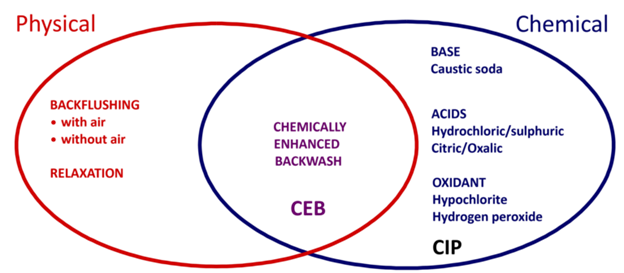 Figure 1: Membrane cleaning methods, Credit: Judd Water & Wastewater Consultants