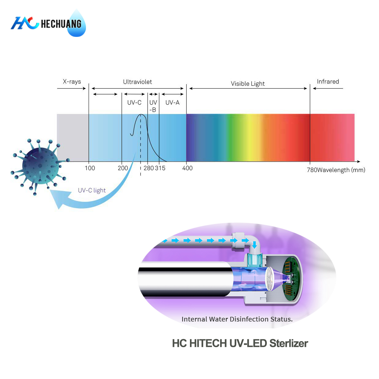UV disinfection is effective at wavelengths from 250 nm to 280 nm. The UVC radiation emitted has a strong bactericidal effect. It is absorbed by...