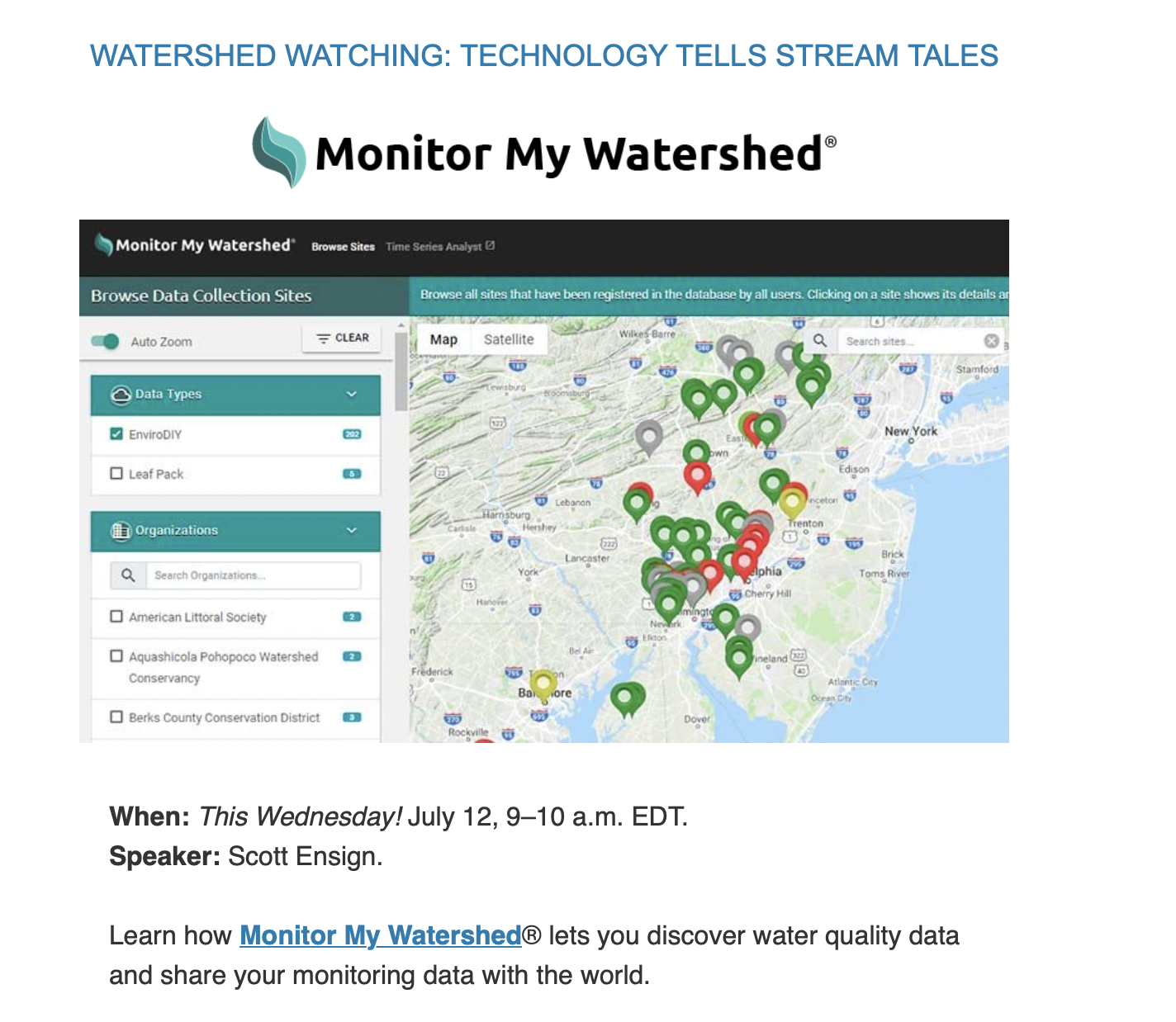 Presented in partnership with Xylem Watermark, these free one-hour sessions provide you with information on three of Stroud Water Research Center’s popular community science programs.
