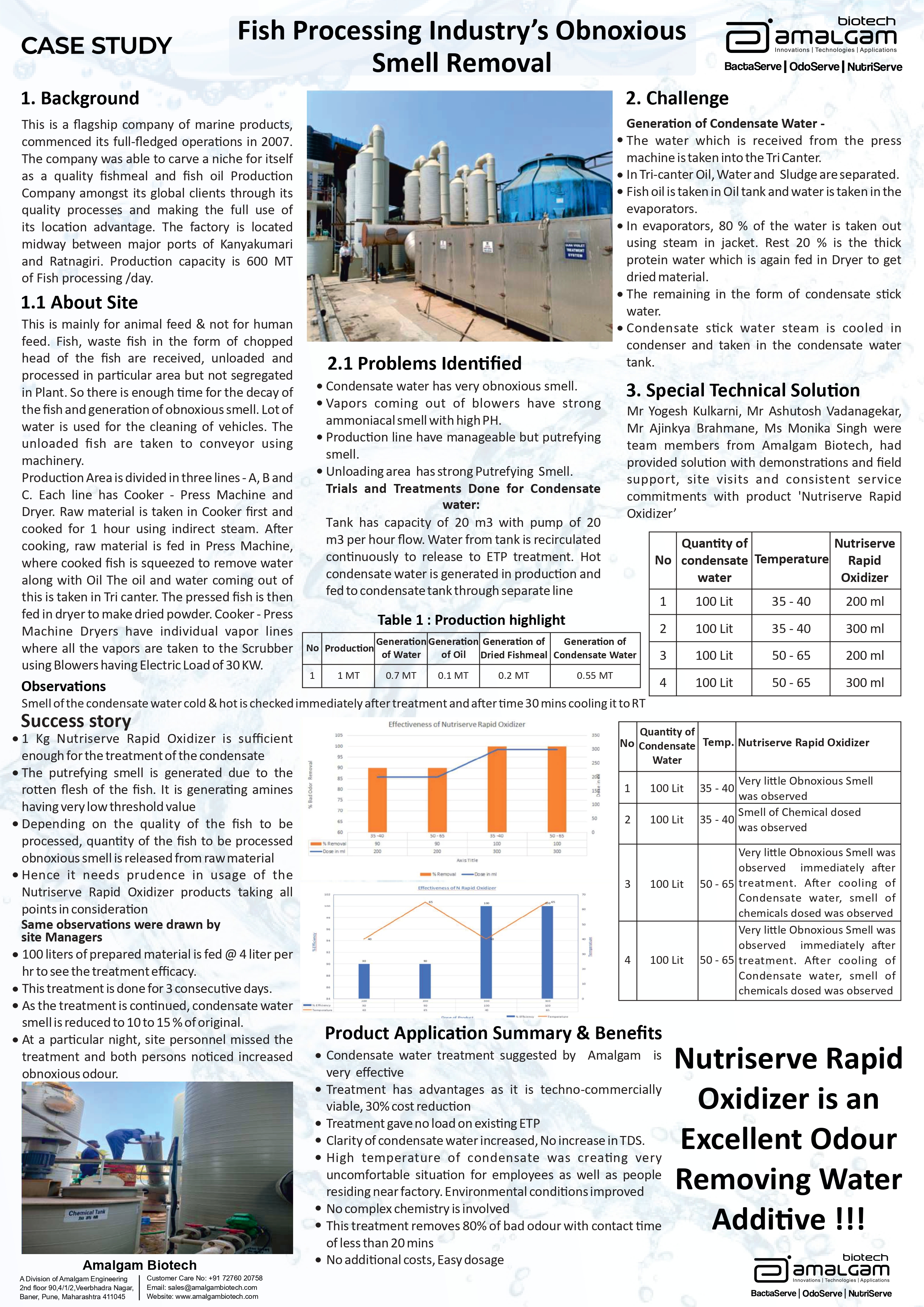 We are thrilled to announce a groundbreaking success story where Amalgam Biotech, a division of Amalgam Engineering (India), played a crucial role in combating the obnoxious smell emanating from a fish processing industry's condensate water. Our revolutionary product, NutriServe - Rapid Oxidizer, proved to be the ultimate solution in this endeavor!