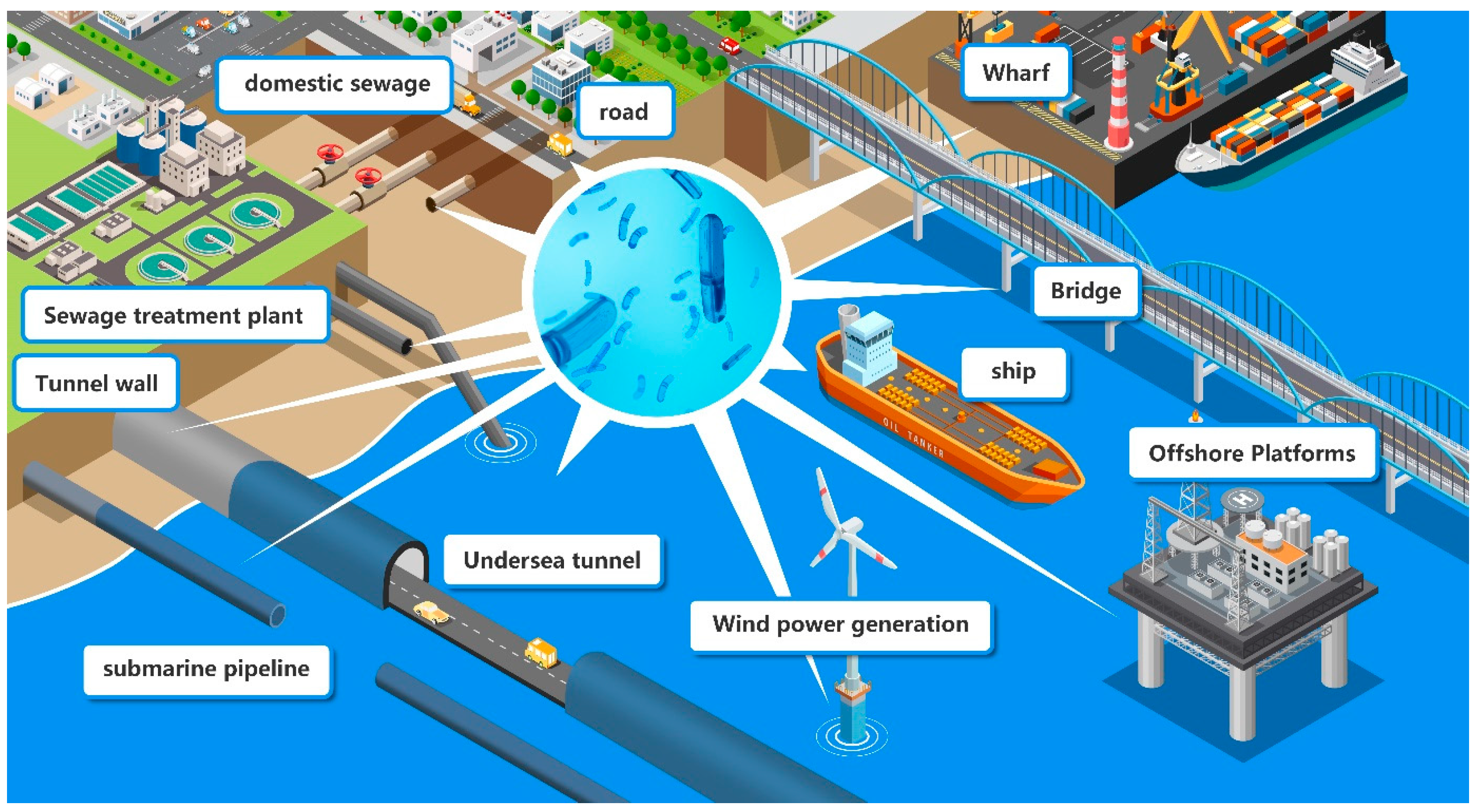 The primary objective of MICC research is concrete protection. However, certain drawbacks and undisclosed effects of various protective measures exist. For instance, while biocides effectively inhibit microbial growth, their impact on concrete performance and the environment may pose concerns. Although modifications to concrete and coatings offer some protection, challenges persist in their practical engineering application. These challenges include cost, construction processes, and environmental impacts.