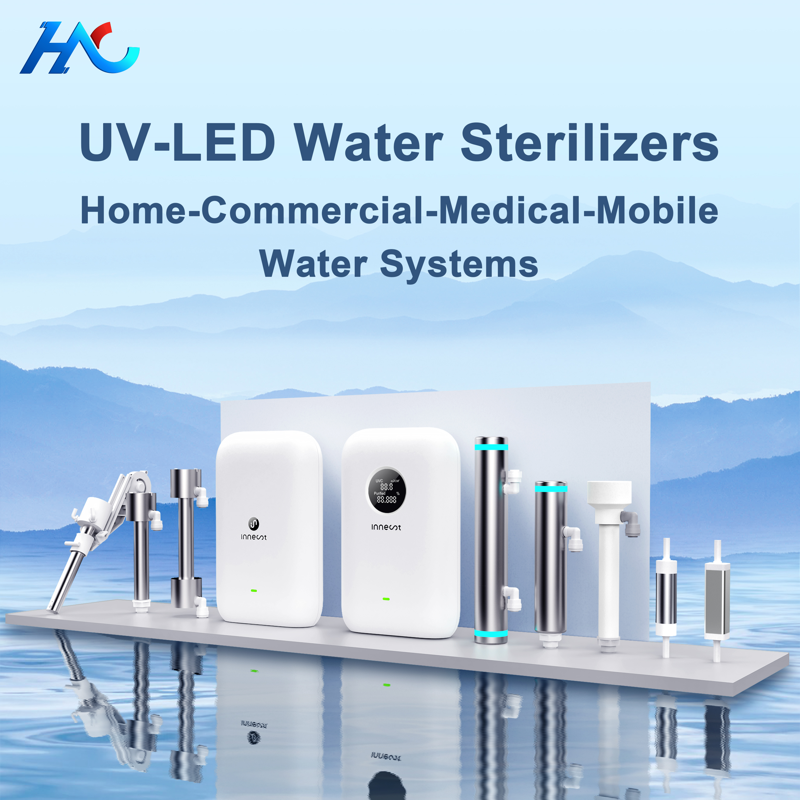 UV-LED Water Sterilziers for: Home: Faucet drinking water, Kichten & BathroomCommerical: Office, Medical, Flat, Hotel, School etc.Outdoor: RV & ...