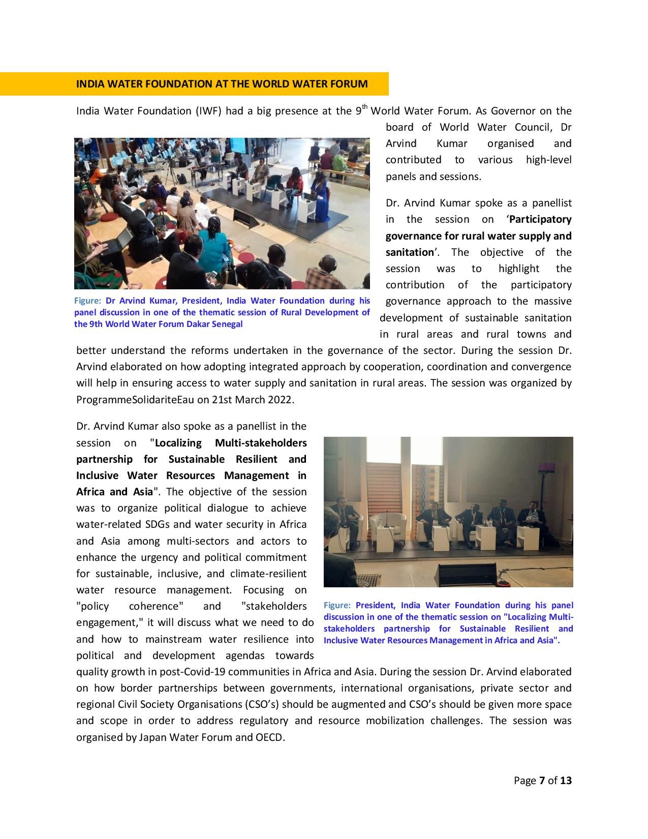Published on by Dr. Arvind Kumar, President- India Water Foundation