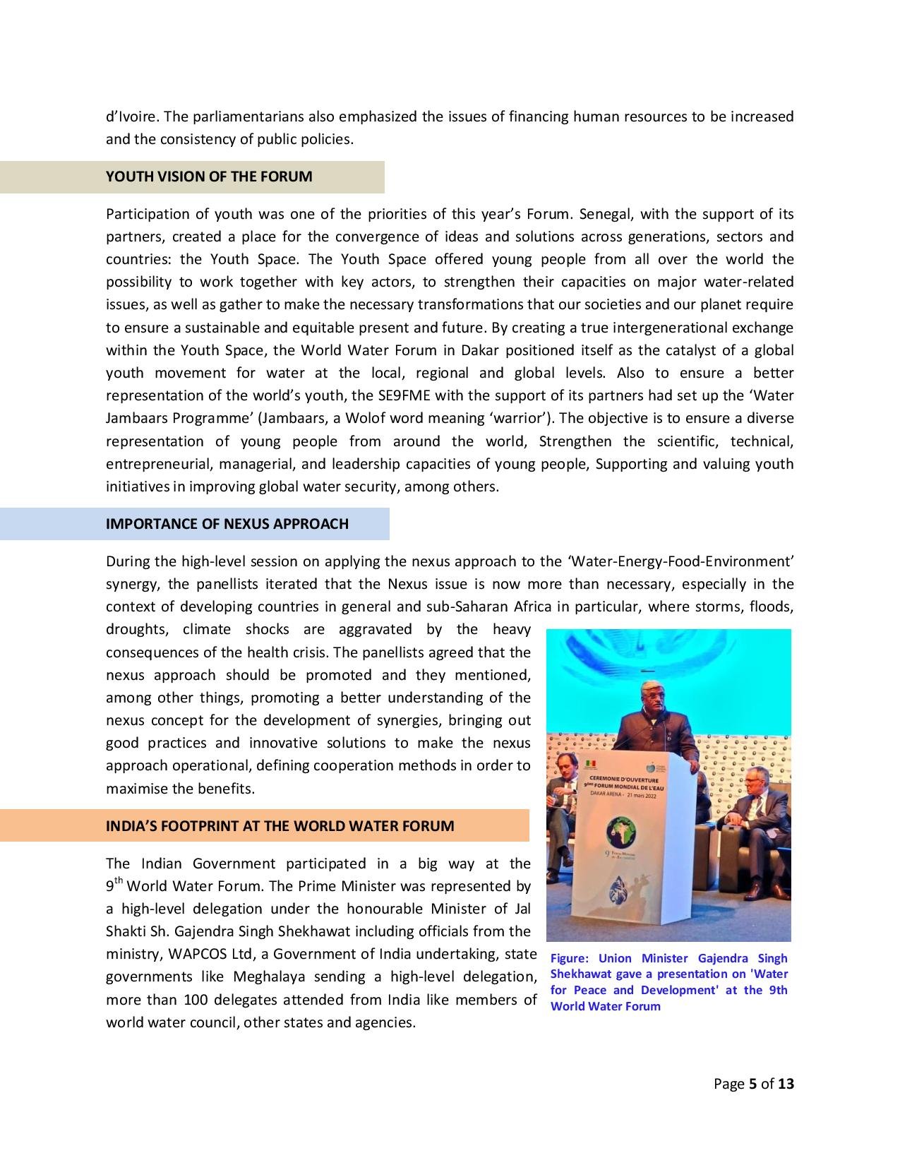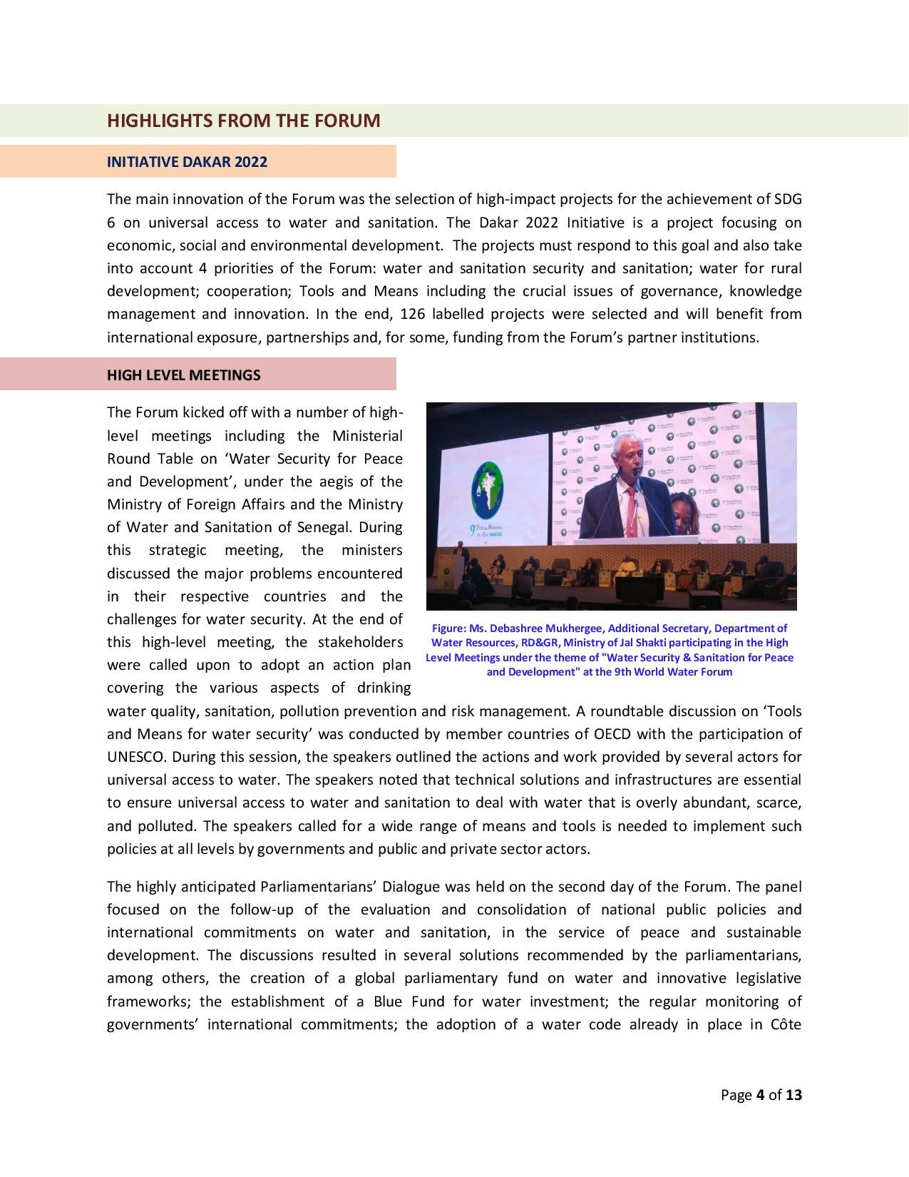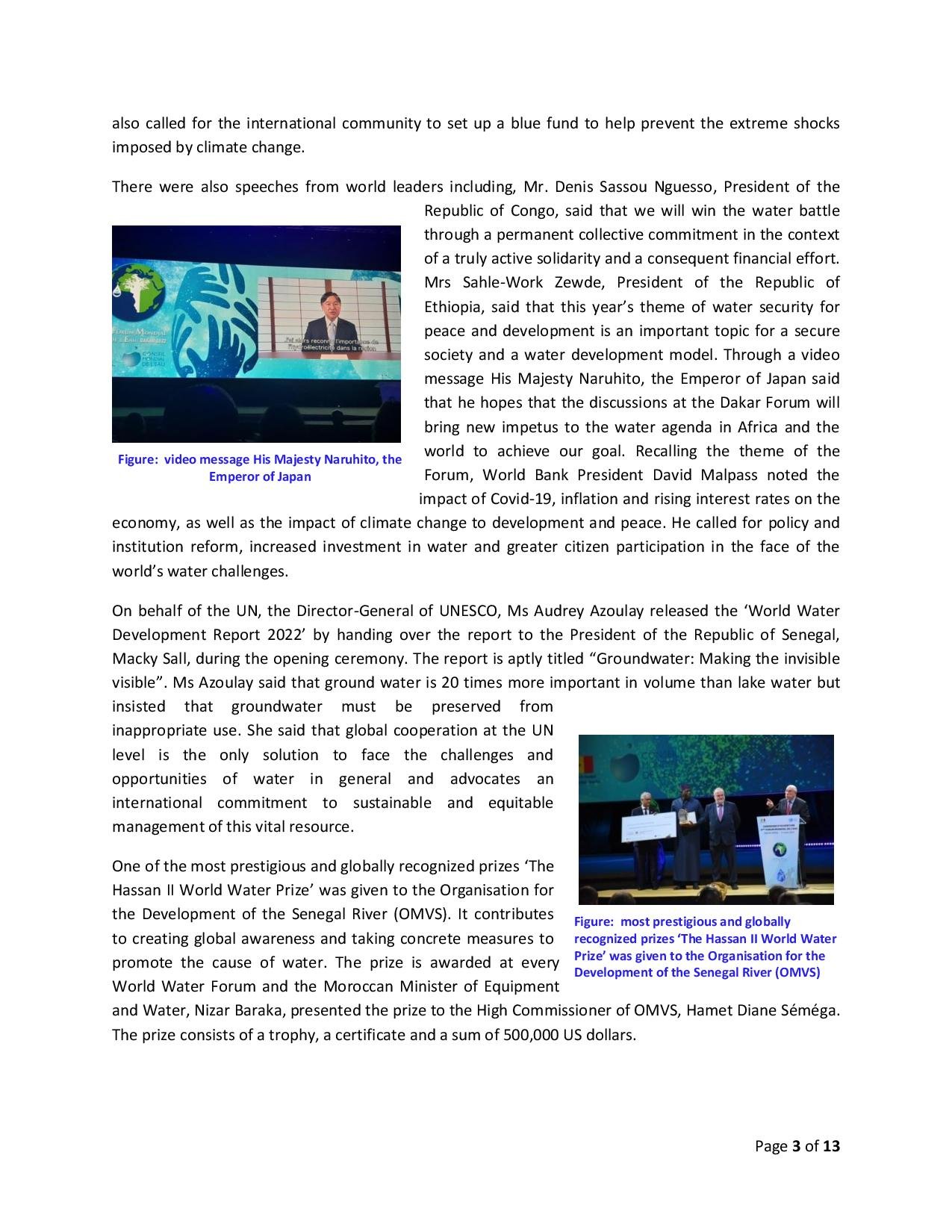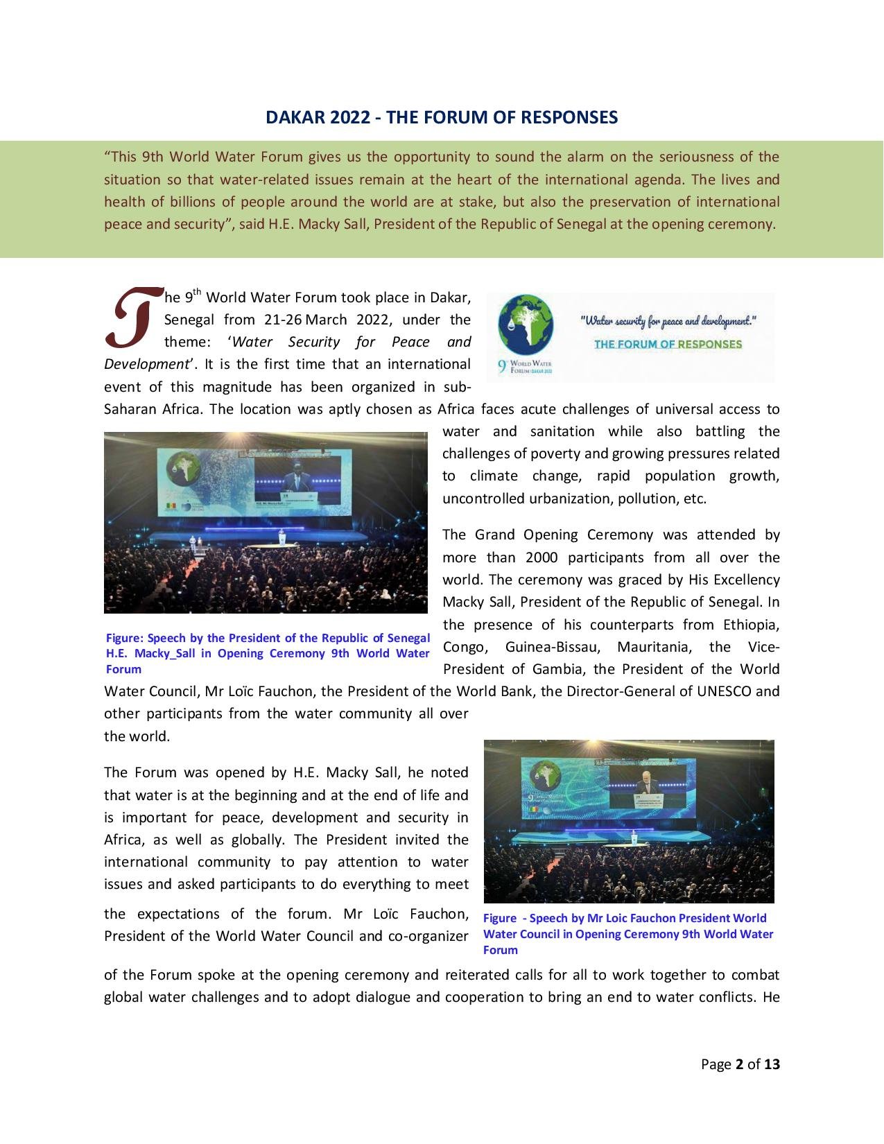 The Forum for peace and development, the 9th world water Forum through an innovative framework identified, promoted and implemented concrete res...