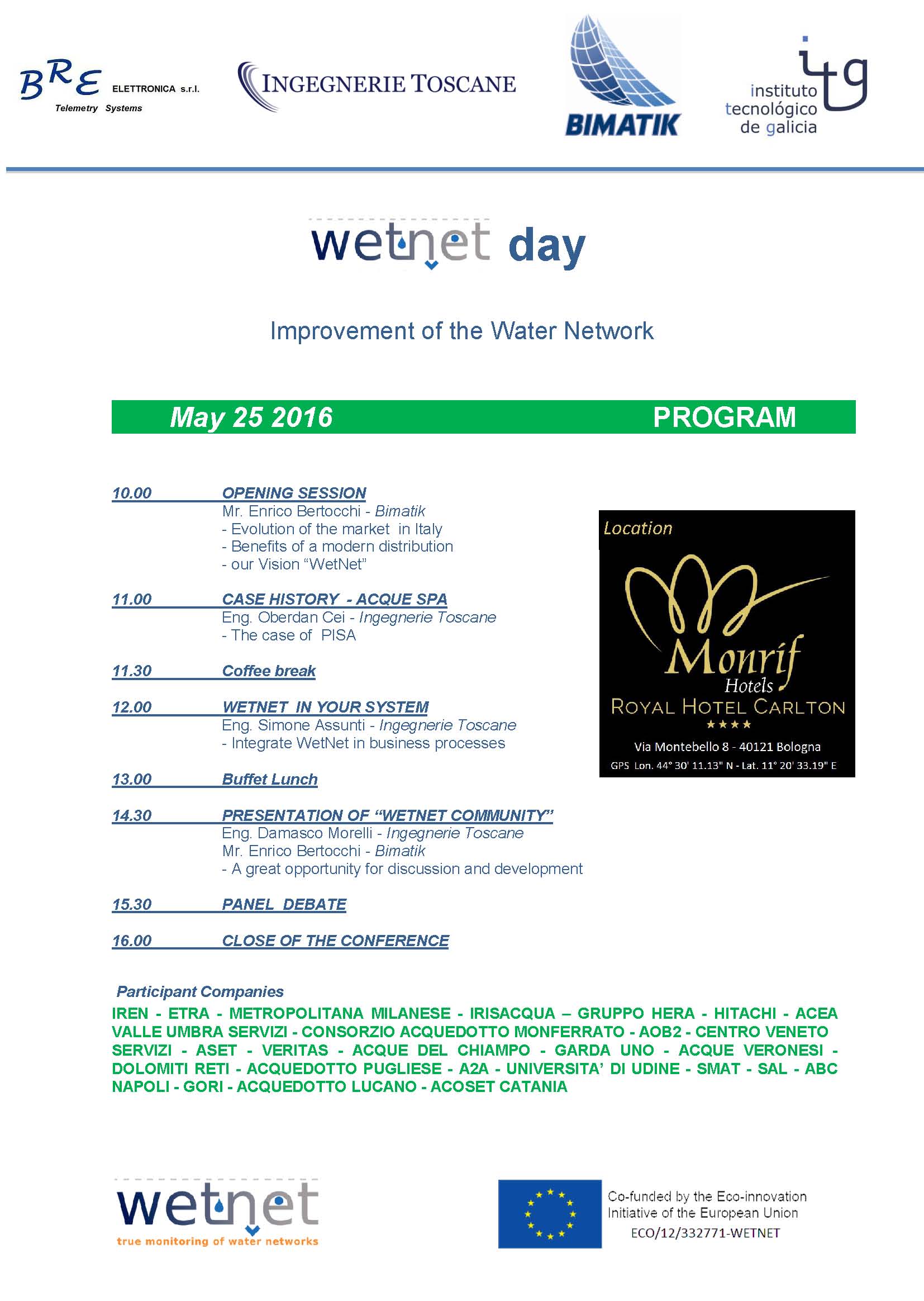 WETNET Conference in BOLOGNA (Italy) on May 25 FEW FREE INVITATIONS REMAINED, CONTACT ME IF INTERESTED IN. Evolution of the water market in Ital...