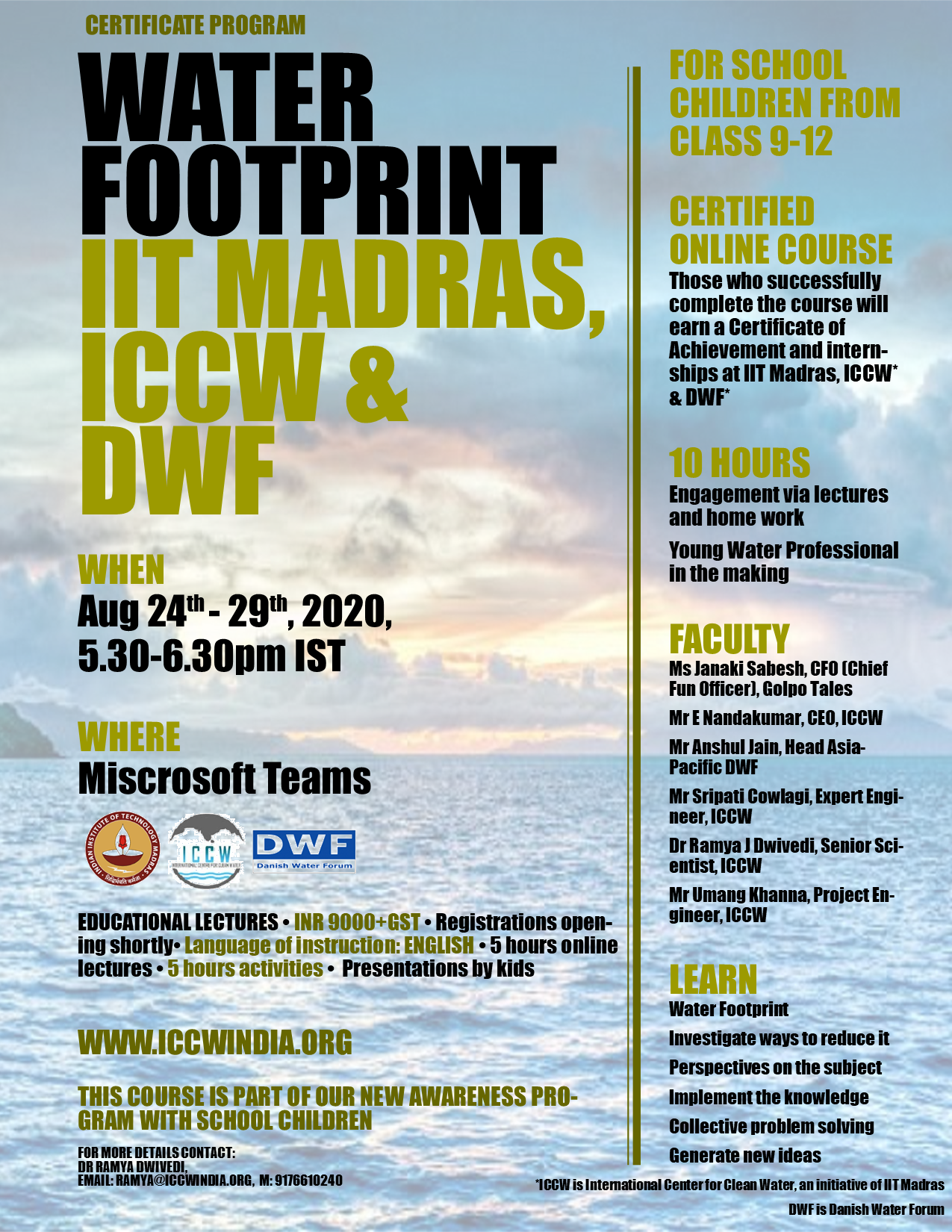 Visit www.iccwinidia.org for more information on the certificate program for school children on WATER FOOTPRINT by IIT Madras, ICCW and DWF.