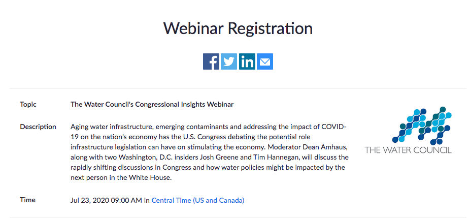 The Water Council's Congressional Insights Webinarhttps://us02web.zoom.us/webinar/register/WN_7w-_2n4wQvmIXn2_i09c5Q