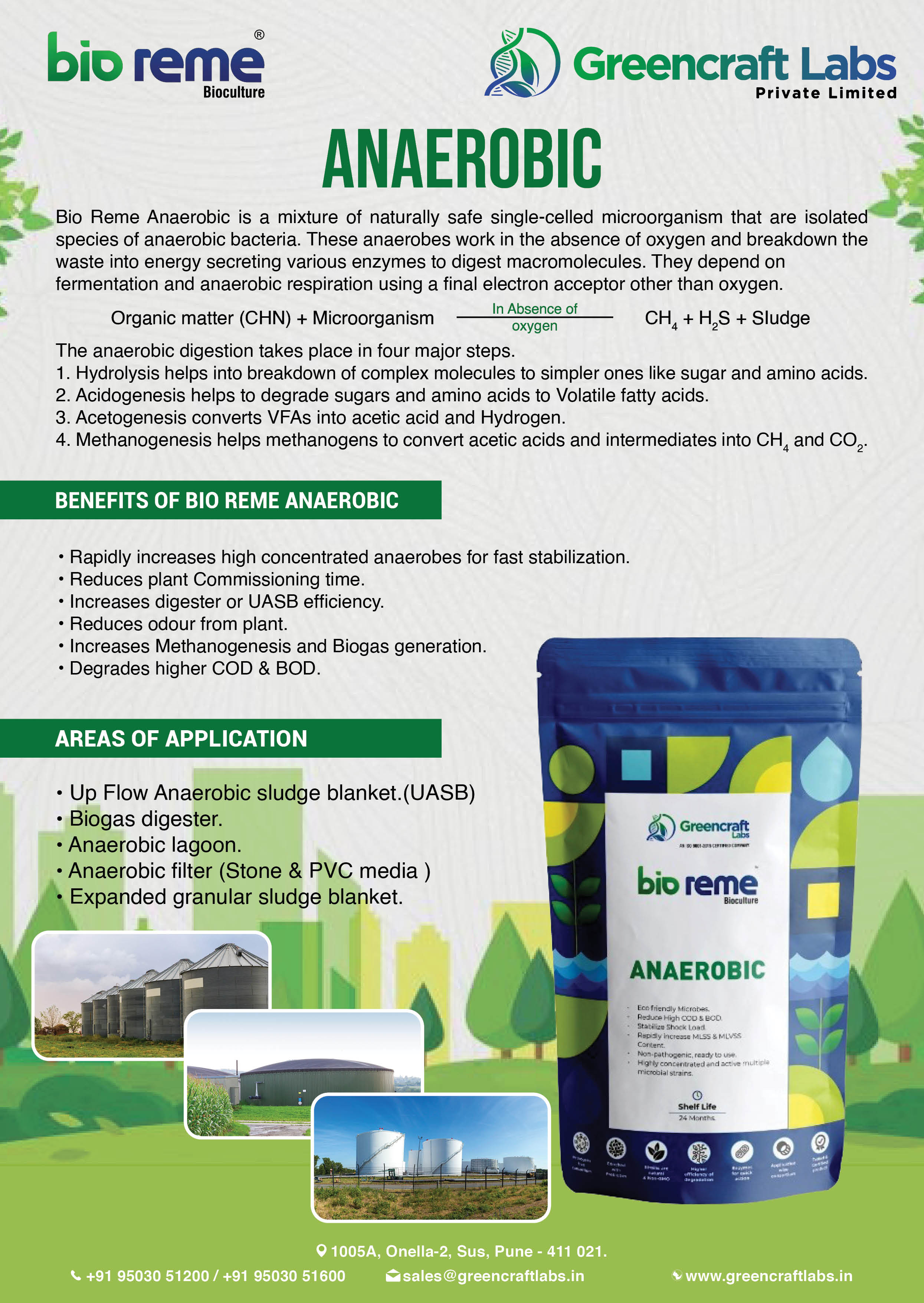 The microbes present in Bio Reme Anaerobic smoothen the step of methanogenesis and positively impact acetogenesis.