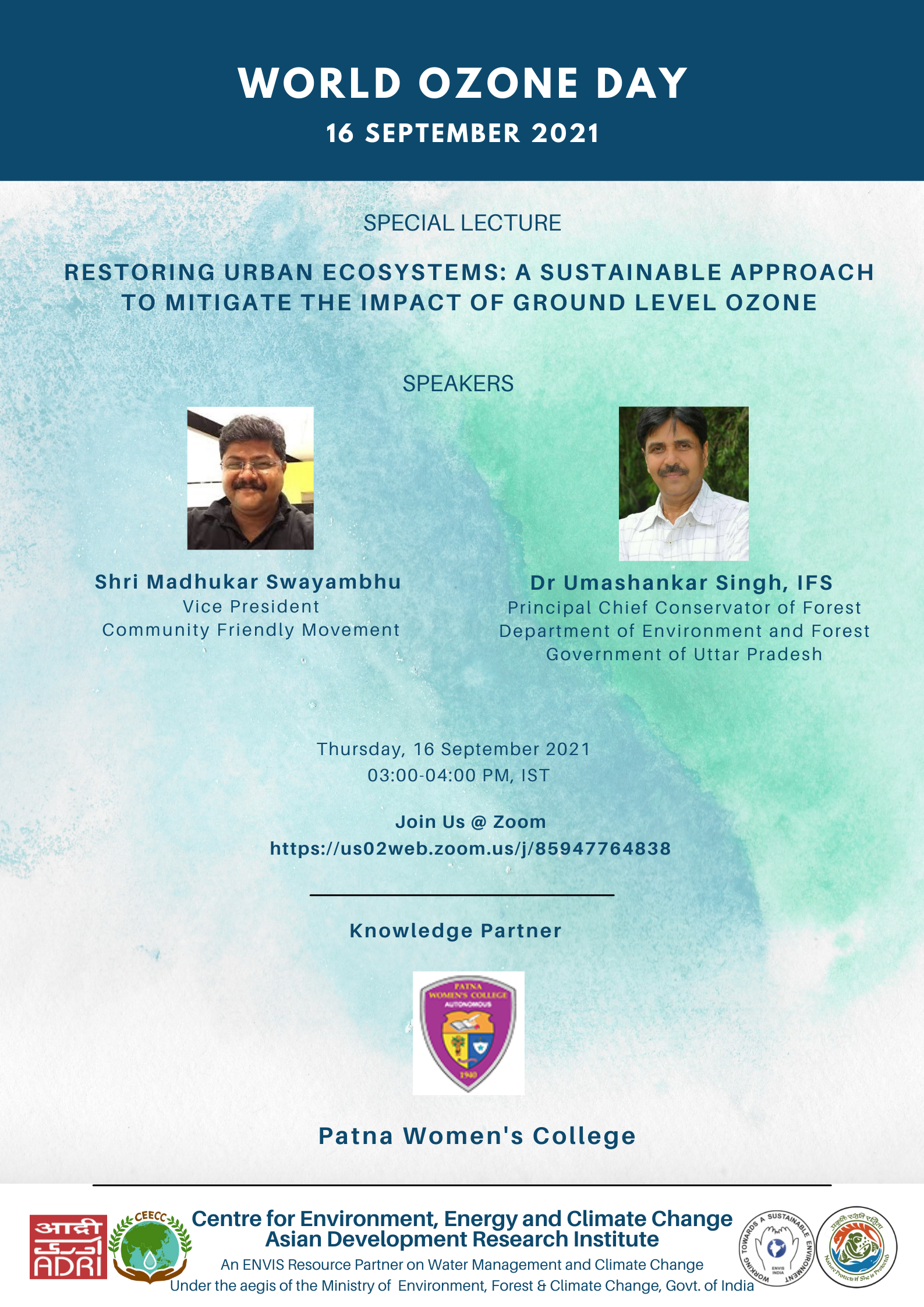 16th September, 2021 - on occasion of World Ozone Day, we had a special session with Asian Development Research Institute on Restoring Urban Eco...