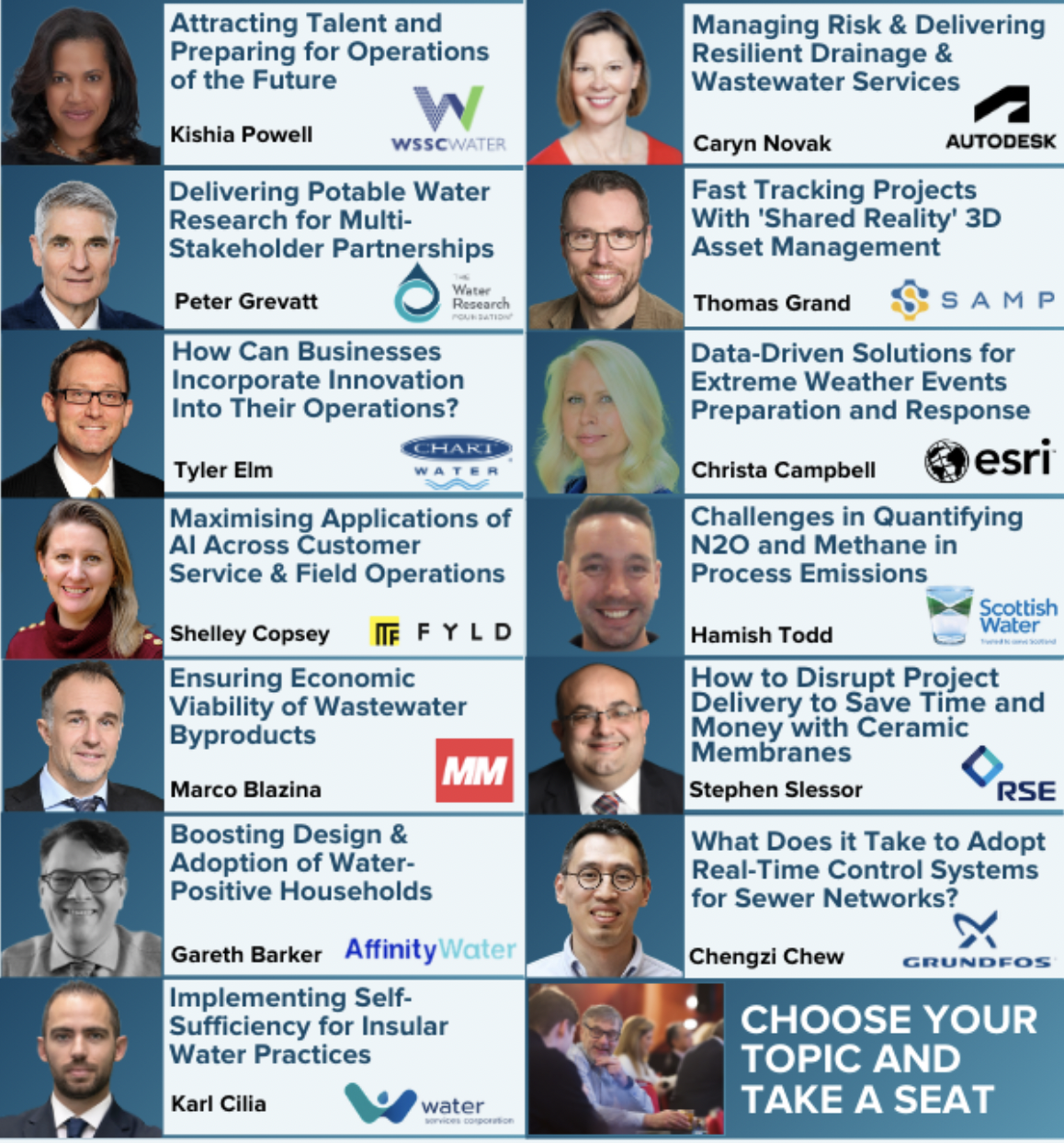 Choose from 13 industry-critical topics, from wastewater byproducts to quantifying process emissions, and extreme weather events response. These sessions take place in person around tables seating 10 people, to encourage open conversation and easy networking.