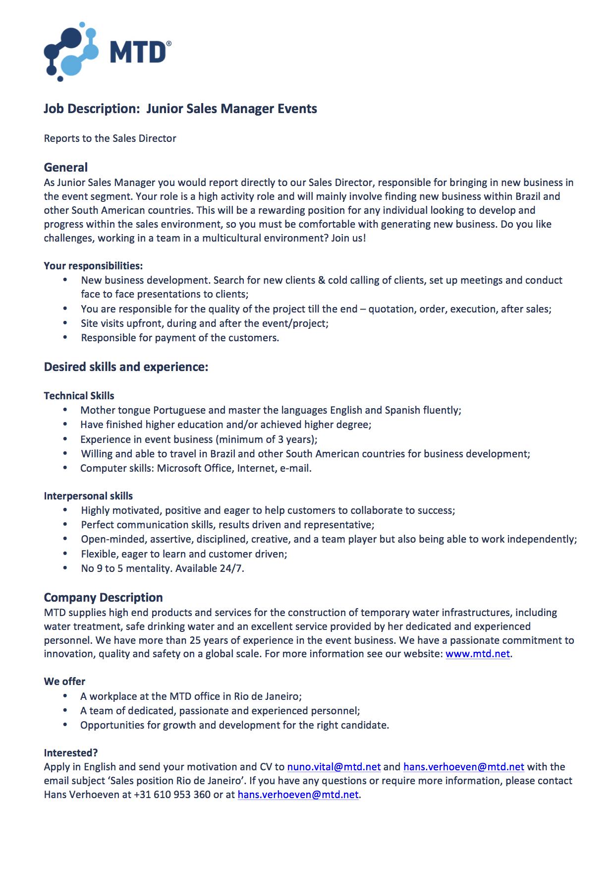 We're looking for a Junior Sales Manager to strengthen our team in Rio de Janeiro. Have a look on our website for the details: https://lnkd.in/d...