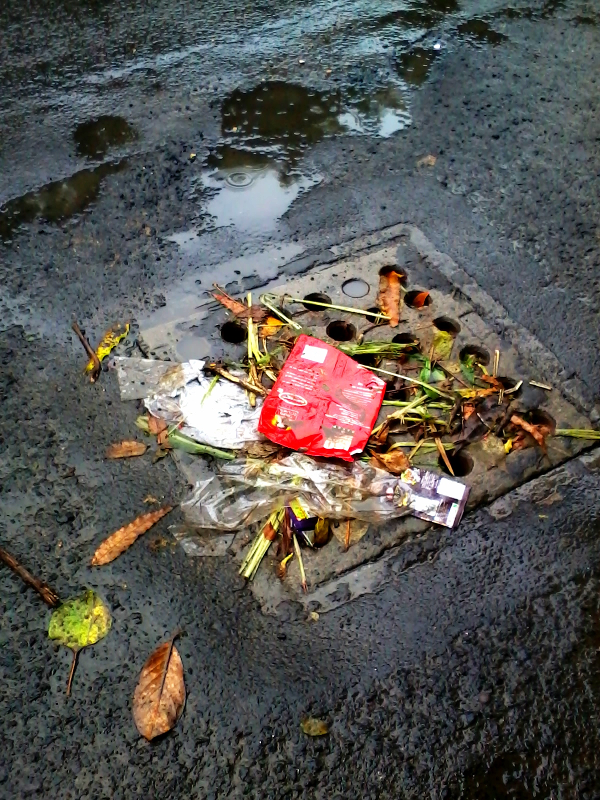 Stephanie, This waste is not from inside the pipe or at the drainage point. The stormwater first causes a water logging in which it drags all these things out and takes them with it. I think I can see a PCC grate through whigh the water flows and the rubbish is left there.The responsible authority's duty is to provide a bin or two where people can place their waste. You can't expect any agency to clean rubbish from inside people's houses. I think these things will remain. People urinating against walls is a common sight in India. This isonly rubbish! And I'm not a govt employee - I am a freelance consultant (on the lookout for the right company to associate myself with),just iin case people think I have a government bias.
