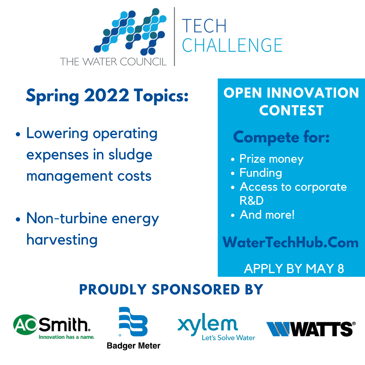 Applications for the Spring 2022 Tech Challenge from The Water Council are now being accepted. For our last challenge, we had applications from ...