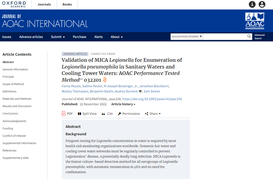 [PUBLICATION] Our scientific article has been published in the Journal of the AOAC INTERNATIONALIts conclusions ? MICA Legionella "presents, in ...