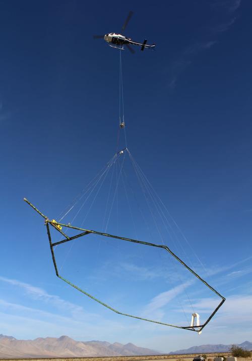 A helicopter making low-level passes over the Santa Ynez Valley towing a large hexagonal frame is using a technology first developed in World War II to peer as far as 1,400 feet below the surface to map the groundwater basin.